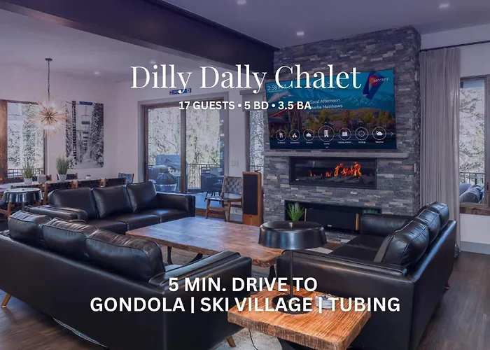 A patio here boasts the views of the mountain. Dilly Dally Chalet includes a bathroom with a hot tub.